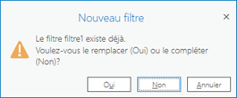 Si le nom du filtre existe déjà dans la liste, le message suivant est