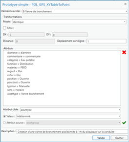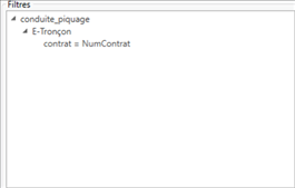 ! Le filtre basé la valeur d’un attribut de la source n’est possible qu’avec l’option « Couche ». Exemple : recherche du tronçon (Couche) le plus proche du point GPS (Couche source du prototype) dont l’attribut « contrat » correspond à la valeur de « NumContrat » du point GPS. |