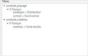 (indiquée dans le titre). ! Pour modifier un filtre, donner le même nom dans le champ « Nom : » et demander le remplacement au moment de la demande d’ajout. ! Dans un filtre, les conditions entre les différents attributs sont associées avec la règle « ET » et les conditions pour un même attribut avec la règle « OU ». |
