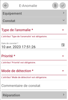 L’anomalie est modifiée, à l’état « Détectée » ou « Réparée » en fonction des informations renseignées. Le formulaire se ferme, le symbole de l’anomalie est affiché dans la