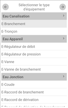 Une liste s’affiche pour sélectionner le type d’équipement concerné