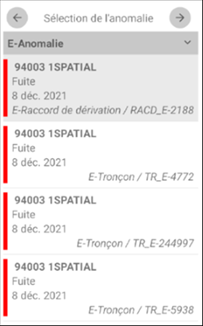 Retourner à la sélection d’une anomalie dans la carte ou à la liste si