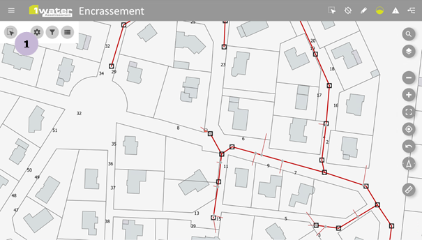 Active le mode sélection d’ouvrages dans la carte pour déclarer un encrassement. Lorsque la fonctionnalité est activée, le bouton est mis en évidence. |
