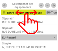Retire tous les ouvrages d’un type d’entité en appuyant sur l’entête d’un groupe et en la faisant glisser vers la droite ou vers la gauche.