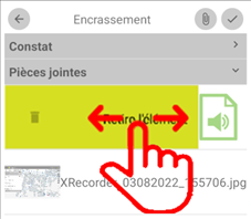 La pièce jointe n’est plus associée à l’encrassement. ! Le groupe « Pièces jointes » est retiré du formulaire s’il n’y a plus de pièce jointe associée. L’utilisateur a la possibilité de l’interrompre la suppression en touchant le bouton « Annuler » dans la fenêtre qui s’affiche en bas de l’écran.