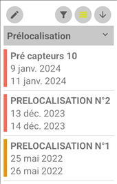 ! Les prélocalisations à l’état « Terminé » ne sont pas visibles dans la carte ni dans la liste.