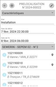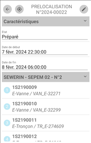 les prélocalisations préparées, installées et en cours sont affichées dans la