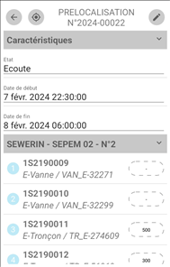 Une prélocalisation en écoute correspond à une prélocalisation pour laquelle les capteurs sont en attente de renseignement du bruit mesuré. Le champ « Etat » est renseigné avec la valeur « Ecoute » et n’est pas modifiable.