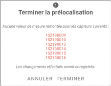 pris en compte. ! Les capteurs non installés ne seront plus présents dans la liste des capteurs de la prélocalisation à l’état « Ecoute ». |