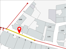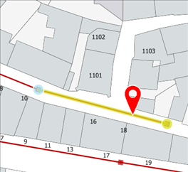 ! Si la distance indiquée dans le champ est supérieure à la longueur du tronçon, la punaise est positionnée sur l’extrémité opposée du tronçon et le champ « Distance au point de départ (m) » est renseignée avec la longueur du tronçon. |