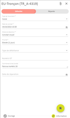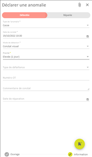 ou compléter les informations de l’anomalie. Passe à l’état « Réparée » et remplit les champs du formulaire