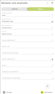 ► Réparation : pour renseigner les informations liées à la réparation de l’anomalie.