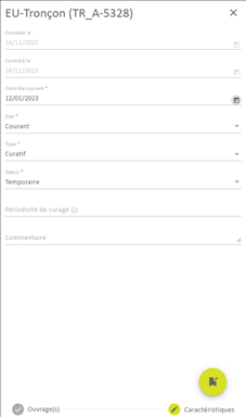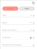valeurs, plages de date, pour afficher : ► Type ; ► Statut ; ► Mode de création ; ► Date de dernier contrôle ; ► Périodicité de curage (en jours). |