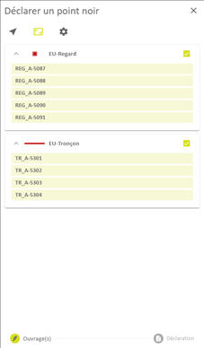 La déclaration d’un point noir peut se faire sur un ou plusieurs ouvrages simultanément. Si plusieurs ouvrages sont sélectionnés, un point noir par ouvrage est créé avec les mêmes informations.