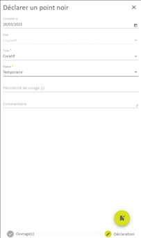 Ouvre la première étape de la déclaration d’un point noir. Par défaut, le