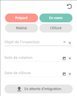 valeurs, plages de date, pour afficher : ► État ; ► Objet de l’inspection ; ► Date de création ; ► Date de clôture ; ► En attente d’intégration. |