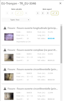 L’affichage des inspections dans la carte et dans la liste dépend de l’étendue de la carte, de leur échelle limite d’affichage et du filtre positionné. A partir d’un nombre d’inspections (paramétrable), le mode d’affichage « unitaire » bascule automatiquement en mode « cluster ». En mode « cluster », le détail des inspections n’est plus indiqué.