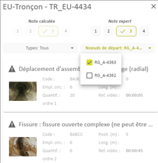 L’utilisateur peut filtrer la liste des inspections du réseau de la façon suivante :