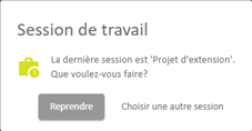 La dernière session de travail est activée. |