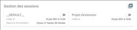 ! Si l’utilisateur n’a pas encore de session, une session « __DEFAULT__ » est automatiquement créée et activée. ! Si l’utilisateur possède une seule session, elle est activée. ! Si l’utilisateur possède plusieurs sessions (droits de multisessions), une demande lui propose d’activer la dernière session utilisée.