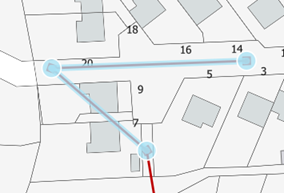 Sélectionne dans la carte la canalisation à déconnecter et la jonction ou l’appareil où reconnecter. |
