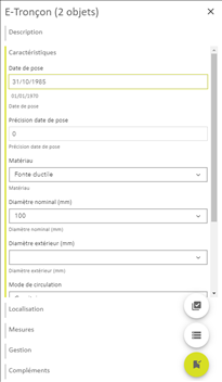 Le titre indique le nombre d’objets concernés par la mise à jour. Les attributs communs sont préremplis. La fiche attributaire ne contient pas obligatoirement tous les