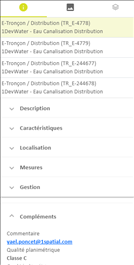 Sélectionne dans la carte la canalisation et la jonction ou l’appareil. |