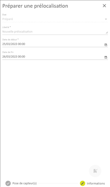 ► Informations : pour renseigner les informations de la pré localisation et la valider.