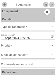 ! Si plusieurs anomalies sont possibles, l’utilisateur doit préciser quelle anomalie modifier. Si l’équipement est associé