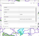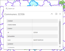 Les informations de la couche « Commune », dans notre exemple, sélectionnée s’affichent :