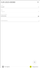 Cette fonctionnalité permet de créer un curage et de renseigner ses principales caractéristiques.