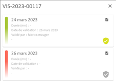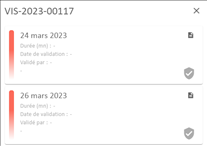 Valide les opérations de visite. Cette fonctionnalité est présente si la validation est configurée en mode manuel et elle nécessite le droit de gestion. L’indicateur numérique précise le nombre d’opérations à valider. |