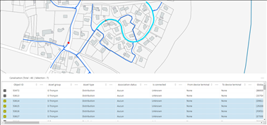 L’élément est mis en évidence dans la carte avec la couleur de l’élément courant dans la sélection. Les autres éléments sont mis en évidence avec la couleur de sélection. Les informations de l’objet courant de la sélection s’affichent dans le formulaire.