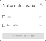 Le nombre de lignes dans le tableau, total ou en fonction d’une sélection dans une ou plusieurs autres colonnes, est affiché. Si le filtre est modifié, le bouton pour appliquer la sélection au niveau du tableau est activé et le nombre de lignes du tableau après application est indiqué.
