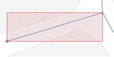 Les éléments en erreur, liés à la topologie du réseau de distribution, sont mis en évidence dans la carte sous la forme de zones à valider sur le même principe que dans l’environnement 1Water Desktop. La zone hachurée en rouge dans l’image ci-dessous, est en erreur de topologie du réseau de distribution :