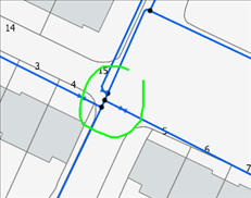 Lorsque le calcul est terminé, le cadrage est modifié pour que l’emprise totale de la coupure soit visible dans la carte. Les éléments sont mis en évidence dans la carte par un cercle de