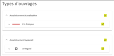 Cadre sur l’ouvrage (depuis la liste) ou sur l’ensemble du curage (depuis l’entête). |