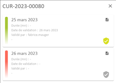 Valide les opérations de curage. Cette fonctionnalité est présente si la validation est configurée en mode manuel et elle nécessite le droit de gestion. L’indicateur numérique précise le nombre d’opérations à valider. |