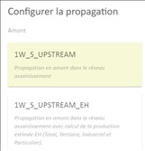 Par défaut, le mode « Amont » est activé. ! Si un point de départ est déjà sélectionné, le passage d’un mode à l’autre, exécute automatiquement la propagation à partir de ce point de départ. |