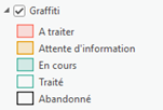 d’information pour être traité ; ► En cours : Graffiti en cours de traitement ; ► Traité : Graffiti traité ; ► Abandonné : Graffiti qui ne sera pas traité. Si