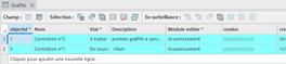 ► la table « Graffiti » en activant la visibilité sur les enregistrements sélectionnés.