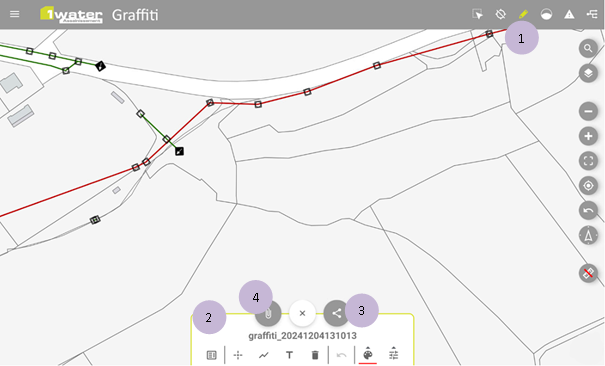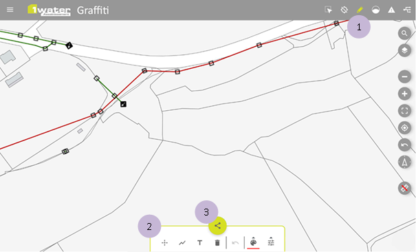 ! Le mode « avancé » est disponible seulement si la couche graffiti est présente dans le réplica. Si ce n’est pas le cas, seules les fonctionnalités de dessin temporaire et de partage (message, mail) sont disponibles au travers du mode « simple ».
