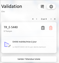 La validation est lancée à l'ouverture du panneau sur l'emprise courante de la carte :