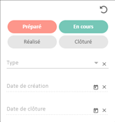 valeurs, plages de date, pour afficher : ► État ; ► Type; ► Date de création ; ► Date de clôture. |