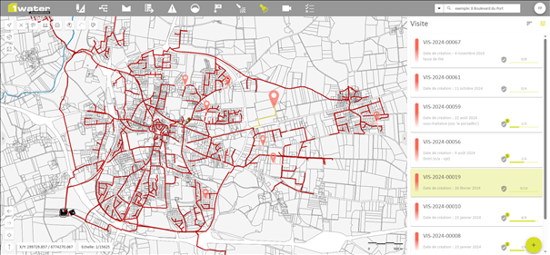 La mise en évidence d’une visite s’effectue à partir de la liste ou de la carte.
