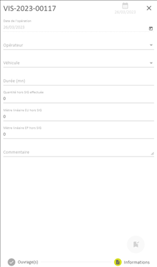 ! L’accès à la page « Informations » n’est possible que si un traitement a déjà été réalisé pour la date d’opération courante (au moins 1 ouvrage a déjà été visité ou indiqué inaccessible à cette date). |
