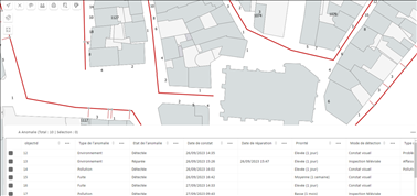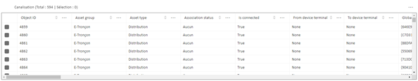! La table contient uniquement les objets visibles de la couche d’entités dans la carte affichée. ! La table s’actualise dynamiquement en fonction du cadre de la carte affichée. |