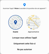 Pour que 1Water puisse utiliser la position de l’appareil, une demande d’autorisation est affichée avant l’authentification.