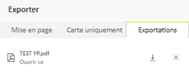 Affiche le résultat de l’export dans l’onglet « Exportations » :