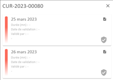Valide les opérations de curage. Cette fonctionnalité est présente si la validation est configurée en mode manuel et elle nécessite le droit de gestion. L’indicateur numérique précise le nombre d’opérations à valider. |